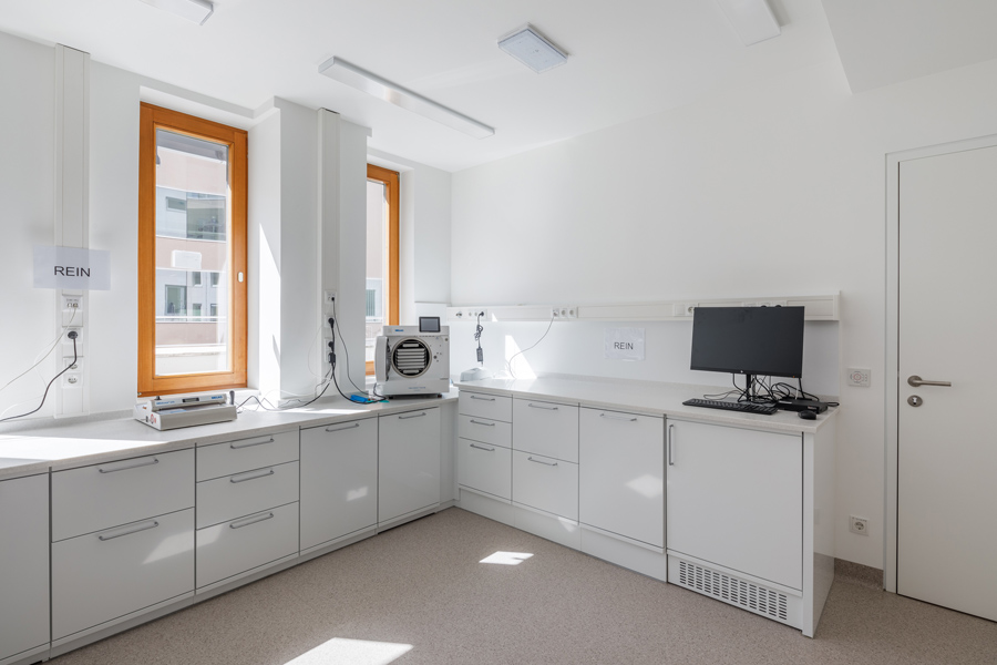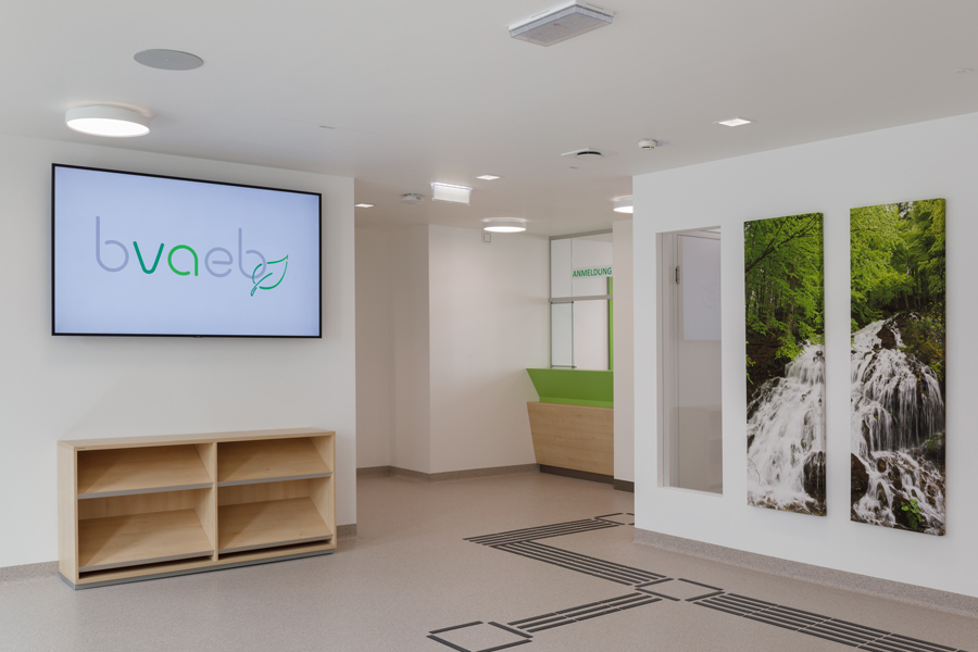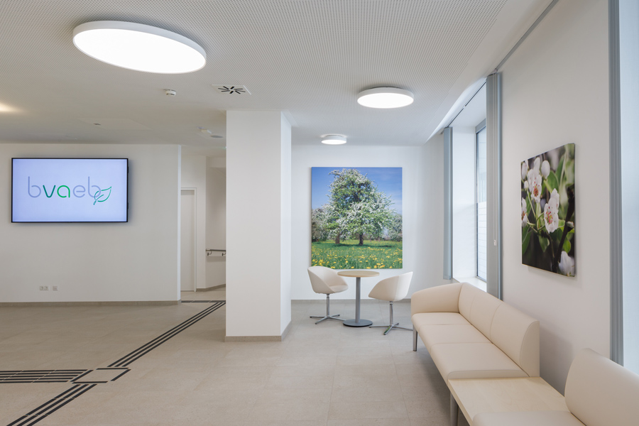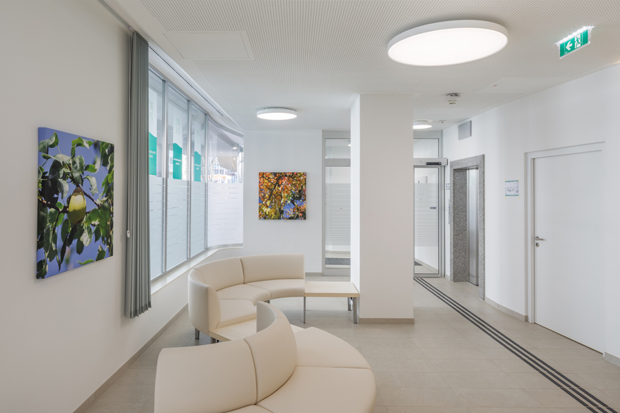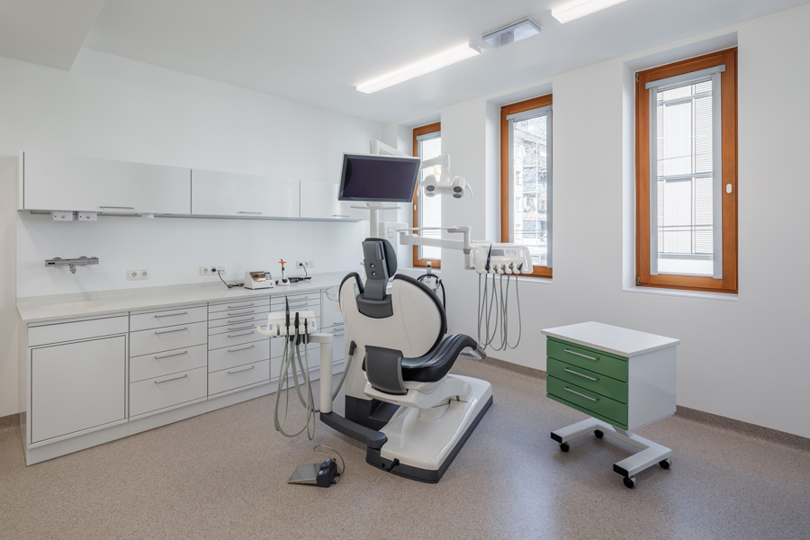 Ein wesentlicher Bestandteil der Gebäudekonzeption ist der tägliche Kundenverkehr. Das Bürogebäude bietet großzügige, gut zugängliche Service-, Warte- und Beratungsbereiche, die speziell auf die Bedürfnisse der Versicherten ausgelegt sind. Die klare Wegeführung, ausreichend bemessene Warteflächen und eine angenehme, helle Gestaltung sorgen für einen reibungslosen Ablauf der Kundenbetreuung. Zusätzlich beherbergt das Gebäude auch zahnärztlichen Behandlungsräume. Diese Praxisbereiche wurden nach höchsten medizinischen und hygienischen Standards errichtet und verfügen über moderne Behandlungs- und Diagnosetechnik. Die räumliche Integration der Zahnbehandlungen ermöglicht den Versicherten einen direkten und unkomplizierten Zugang zu medizinischen Leistungen innerhalb desselben Gebäudes.