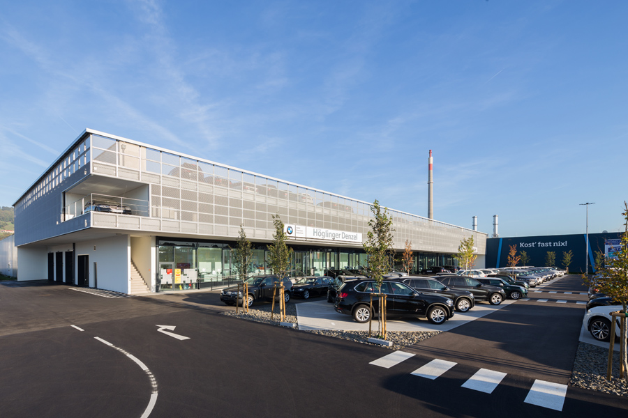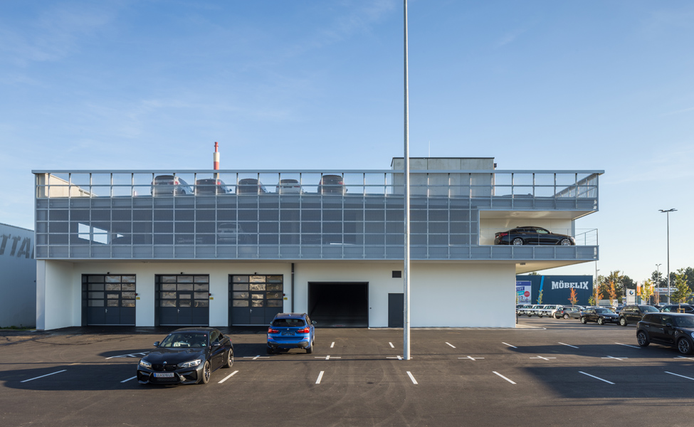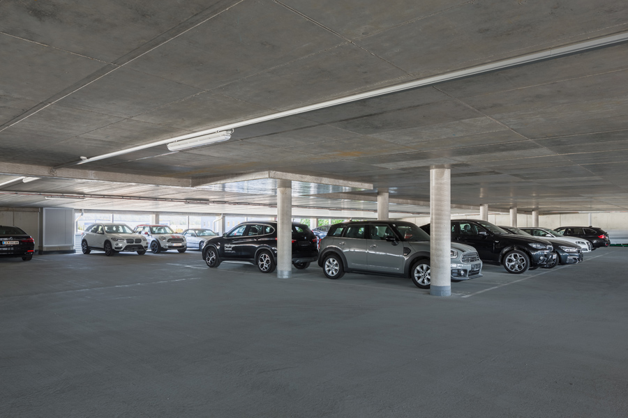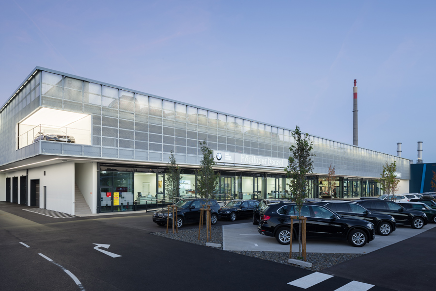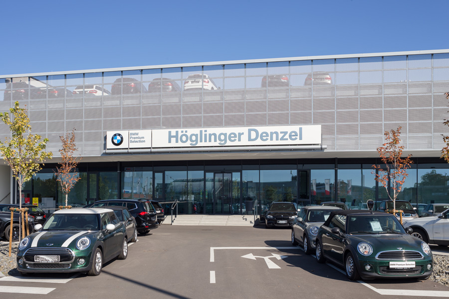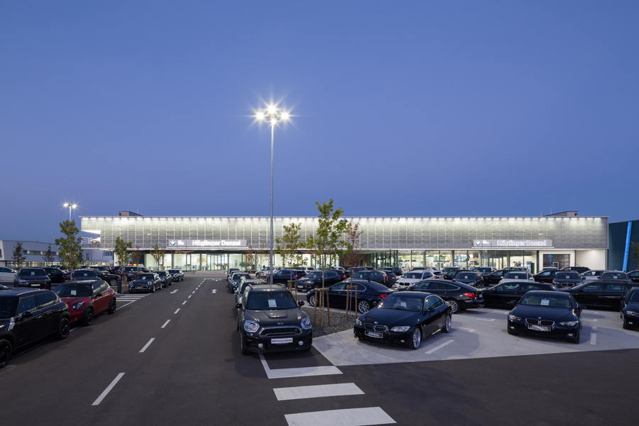 Neubau eines Kundencenters für Gebrauchtwagen und BMW-Motorräder inkl. 2 geschossigem PKW-Parkhaus, Wasch- und Servicestationen sowie Büros, Aussenanlagen mit großzügiger Fahrzeugpräsentation.