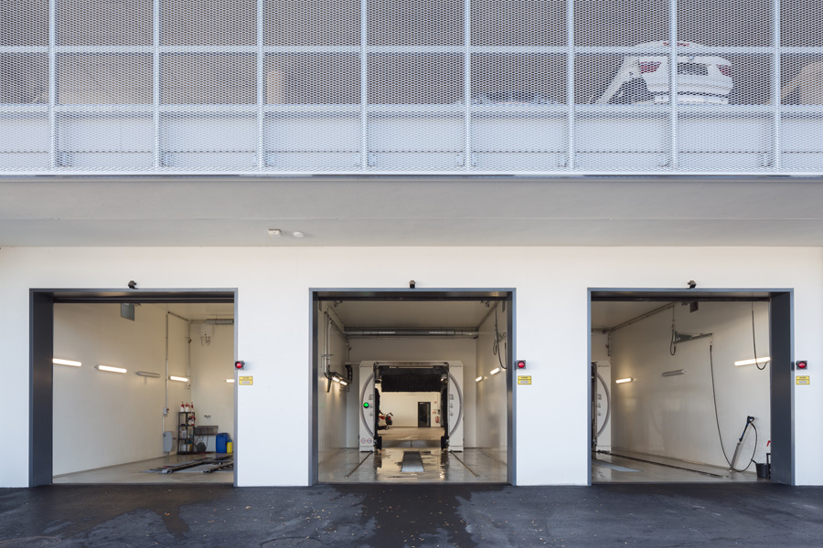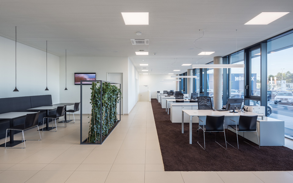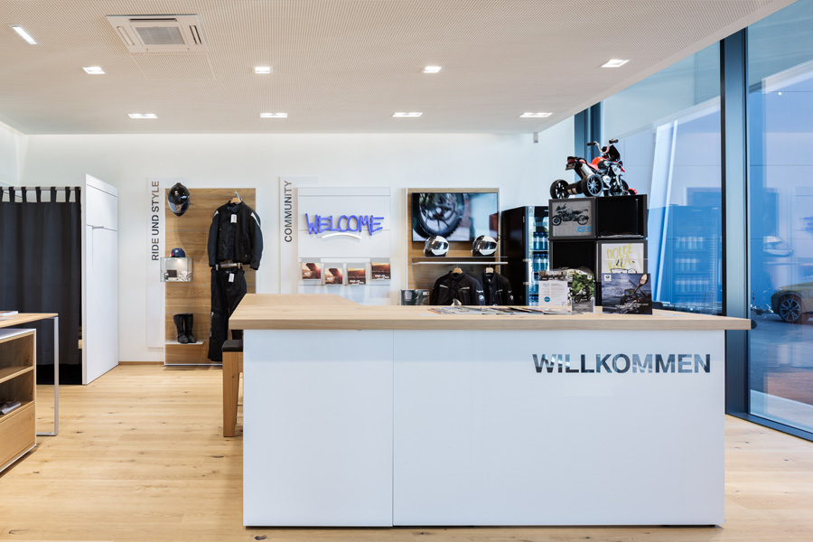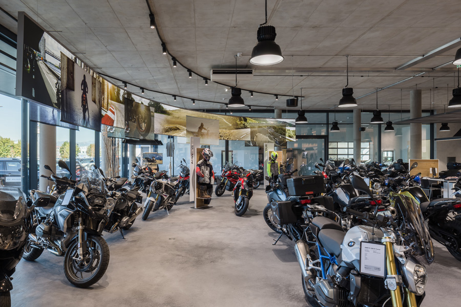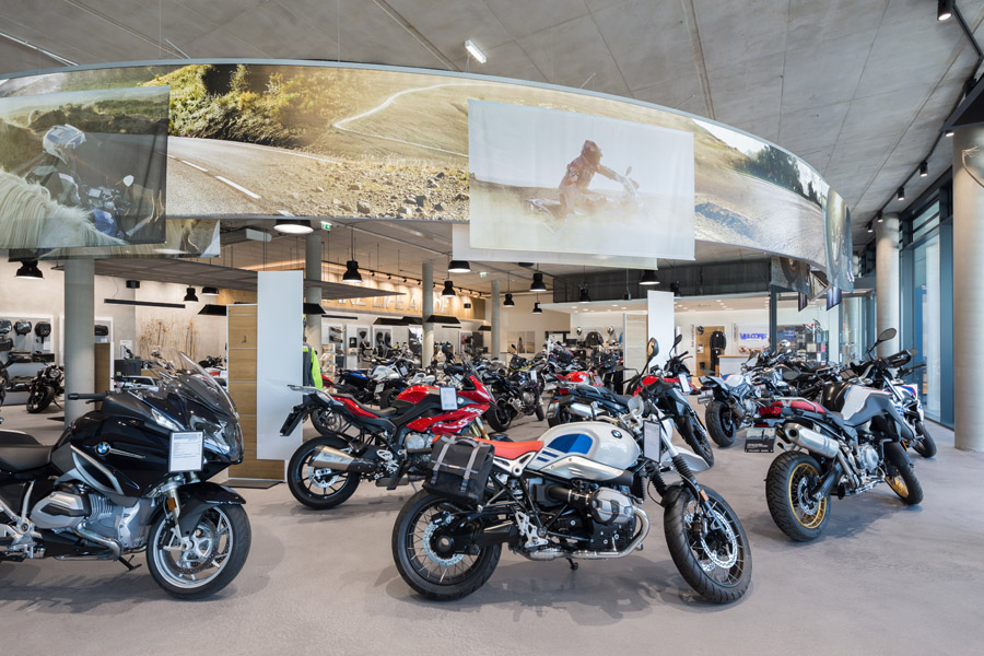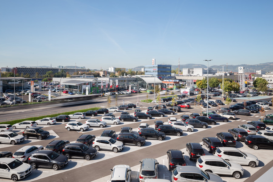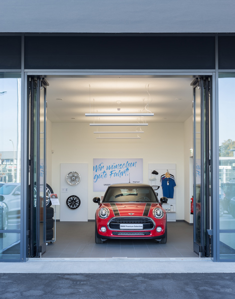Neubau eines Kundencenters für Gebrauchtwagen und BMW-Motorräder inkl. 2 geschossigem PKW-Parkhaus, Wasch- und Servicestationen sowie Büros, Aussenanlagen mit großzügiger Fahrzeugpräsentation.