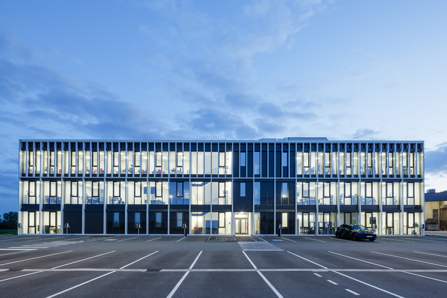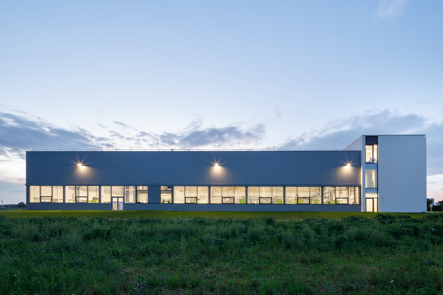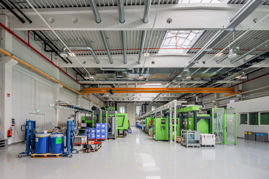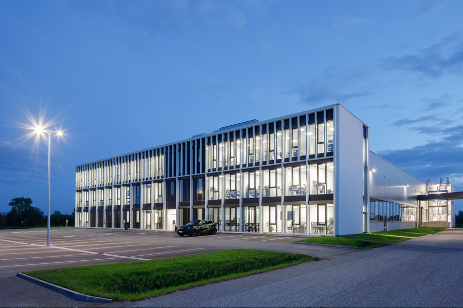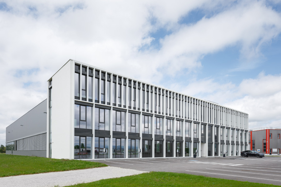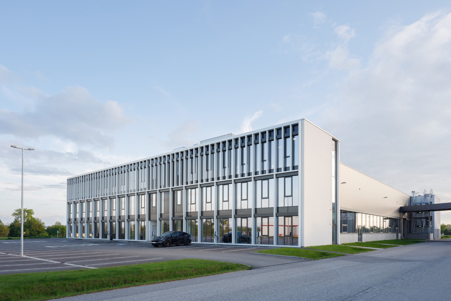 Errichtung einer Produktionshalle für die Herstellung von LSR Elastomerteilen (Verarbeitung von Flüssigsilikon), Dosiersystemen und Werkzeugbau mit vorgesetztem, dreigeschoßigen Bürogebäude.