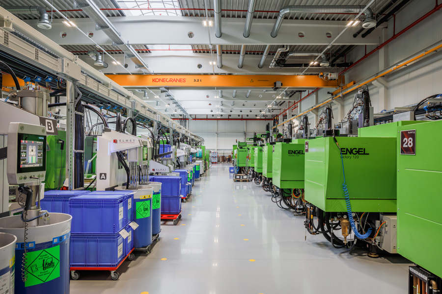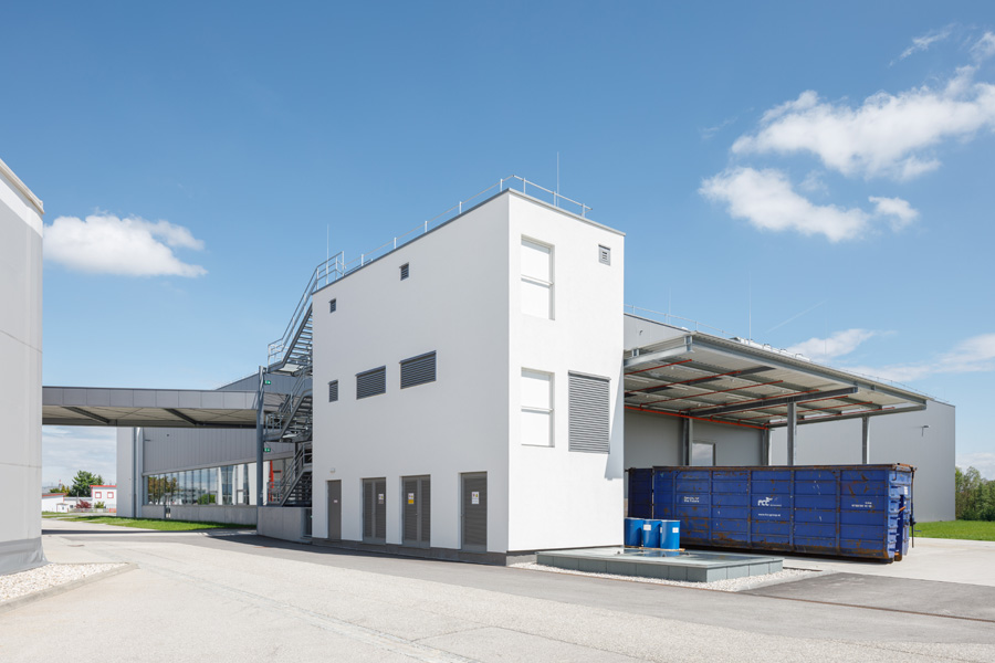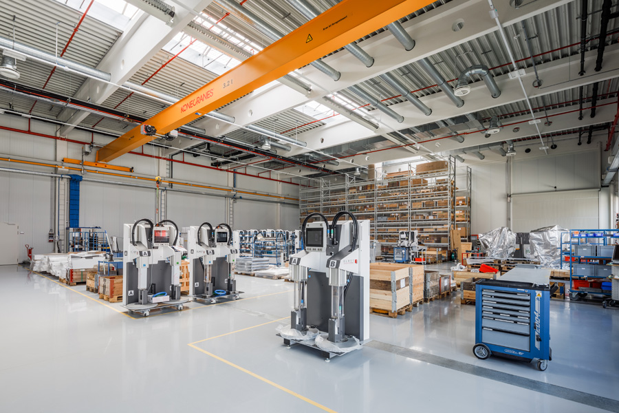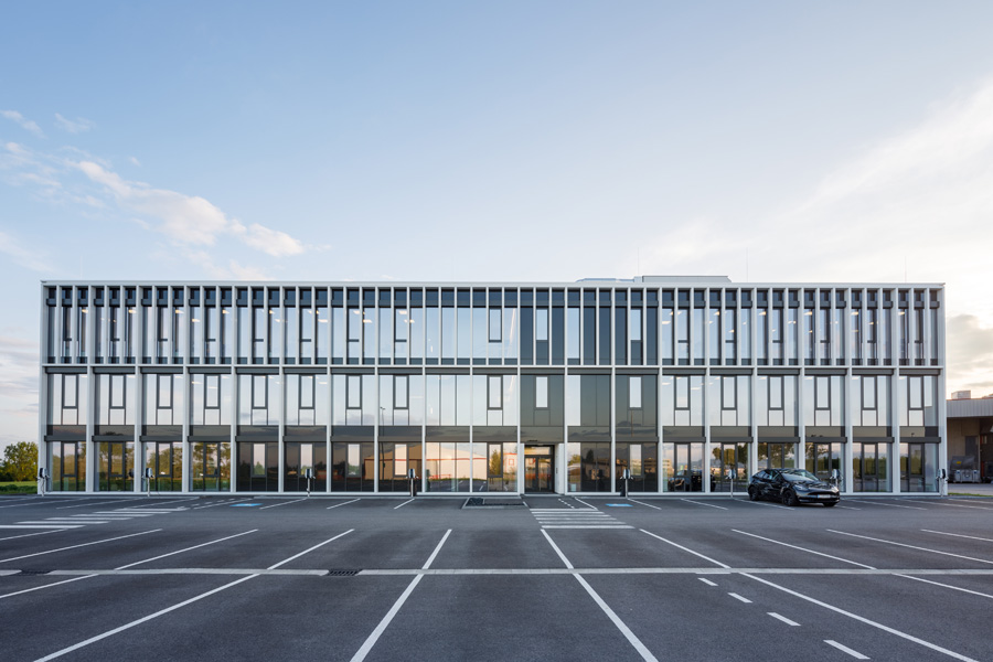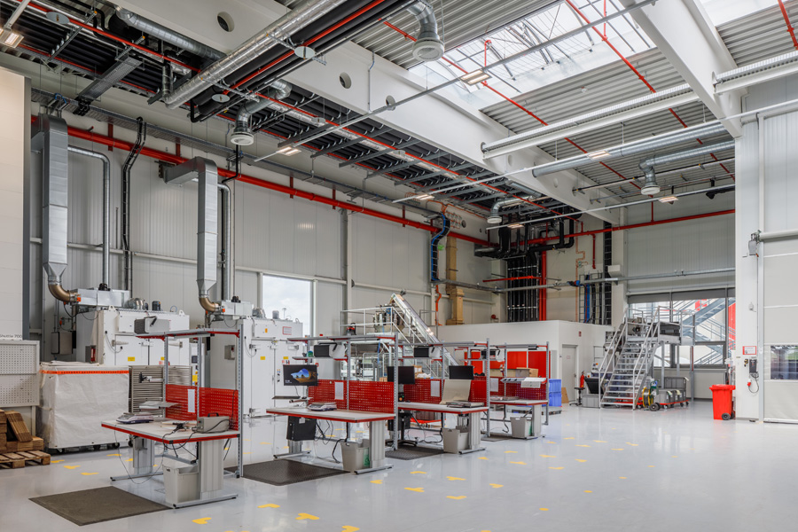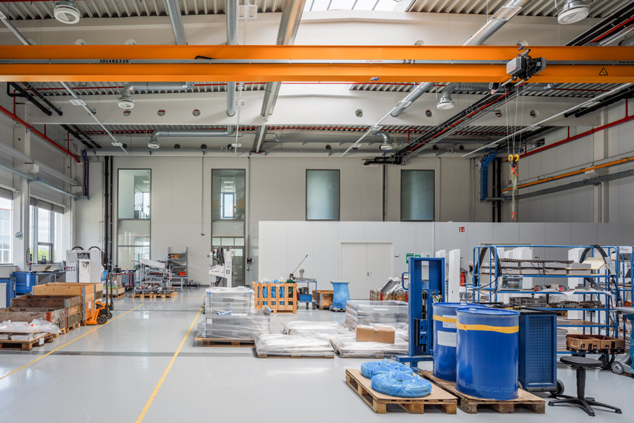 Errichtung einer Produktionshalle für die Herstellung von LSR Elastomerteilen (Verarbeitung von Flüssigsilikon), Dosiersystemen und Werkzeugbau mit vorgesetztem, dreigeschoßigen Bürogebäude.