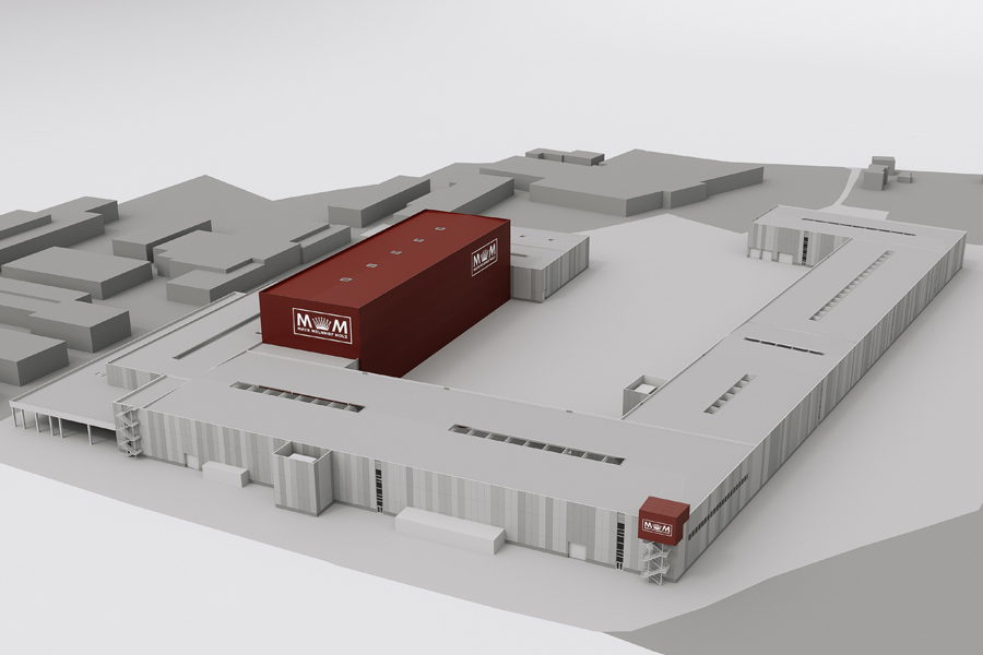großmaßstäbliche L-förmige Anlage als funktionaler Mantel für sämtliche Prozessschritte