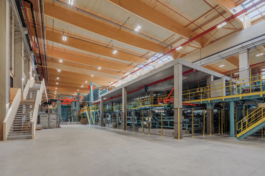 Die Planung eines großmaßstäblichen Industriekomplexes vollständig in Holzbauweise erforderte millimetergenaue Abstimmung zwischen Tragwerk, Maschinenaufstellung und Logistikwegen.